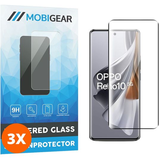 Mobigear Premium OPPO Reno 10 Panzerglas Gehärtetes Glas Displayschutz - Hüllenfreundlich - Schwarz (3er Pack)