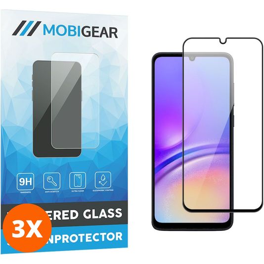 Mobigear Premium Samsung Galaxy A05 Panzerglas Gehärtetes Glas Displayschutz - Hüllenfreundlich - Schwarz (3er Pack)