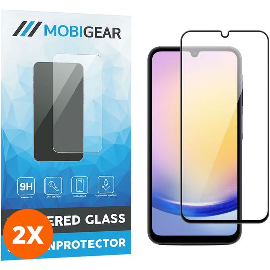 Mobigear Premium Samsung Galaxy A25 Panzerglas Gehärtetes Glas Displayschutz - Hüllenfreundlich - Schwarz (2er Pack)