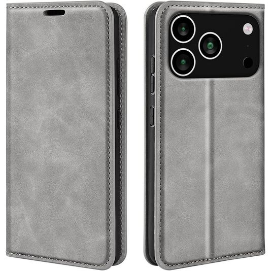 Mobigear Retro Slim iPhone 17 Pro Hülle Klapphülle Geldbörse - Grau