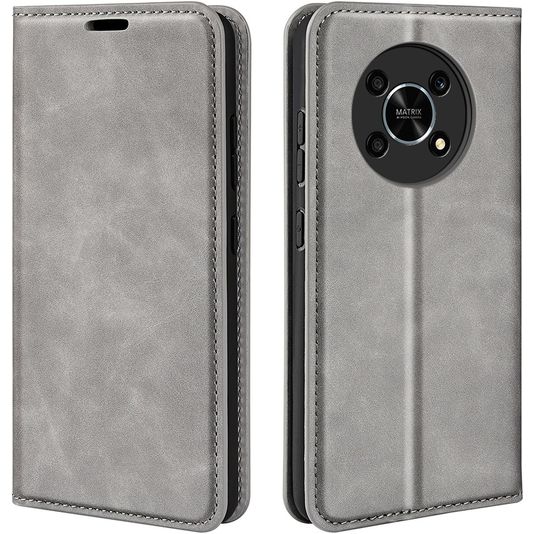 Mobigear Retro Slim HONOR Magic 4 Lite Hülle Klapphülle Geldbörse - Grau
