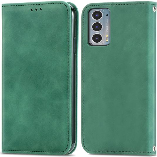Mobigear Retro Slim Motorola Edge 20 Hülle Klapphülle Geldbörse - Grün