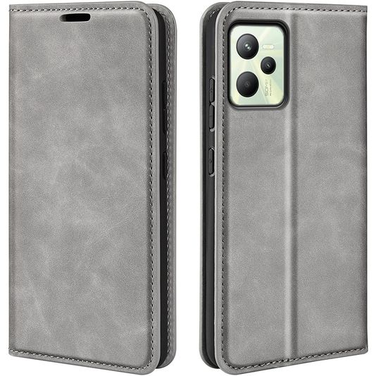 Mobigear Retro Slim Realme C35 Hülle Klapphülle Geldbörse - Grau