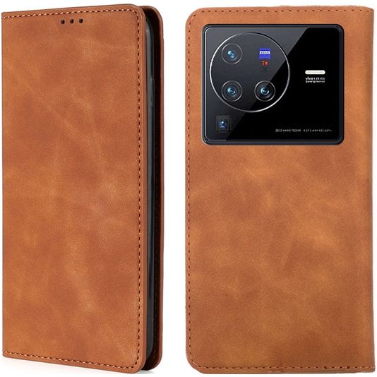 Mobigear Retro Slim Vivo X80 Pro Hülle Klapphülle Geldbörse - Cognac
