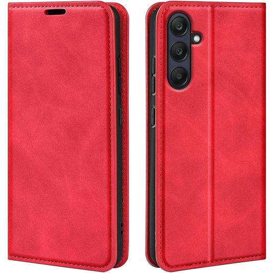 Willst du eine Samsung Galaxy A26 Hülle mit Rundum-Schutz und einem stylischen und praktischen Design? Dann ist diese Mobigear Retro Slim Klapphülle für Samsung Galaxy A26 die perfekte Wahl. Die Klapphülle ist aus hochwertigem Kunstleder gefertigt und kommt in der Farbe rot. Mit einer Klapphülle ist dein Samsung Galaxy A26 rundum gut geschützt, auch der empfindliche Bildschirm. Die Klappe öffnet sich seitlich wie ein Buch und schließt sich fest mit einem Magnetverschluss. Es gibt Platz für 2 Karten, damit du deine Bankkarte oder deinen Ausweis immer zur Hand hast.