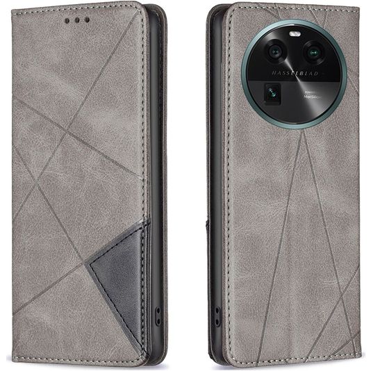 Mobigear Rhombus Slim OPPO Find X6 Hülle Klapphülle - Grau