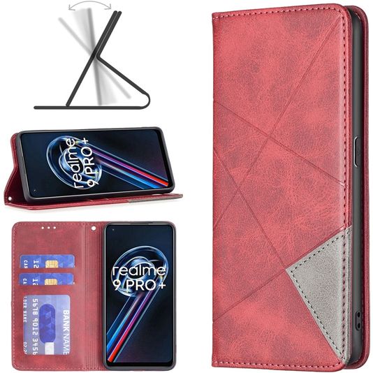 Mobigear Rhombus Slim Realme 9 Pro Plus Hülle Klapphülle - Rot