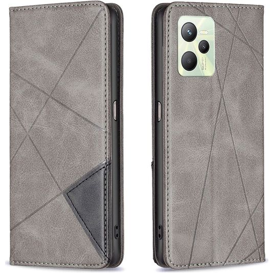 Mobigear Rhombus Slim Realme C35 Hülle Klapphülle - Grau