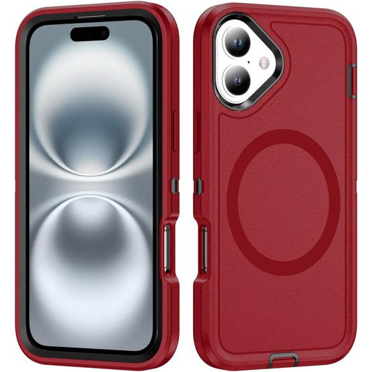 Mobigear Rugged Mag iPhone 16 MagSafe Hülle Hardcase Backcover Stoßfest - Rot
