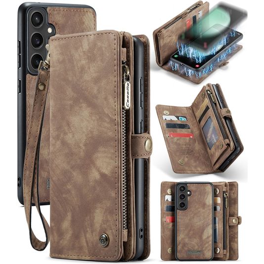 Caseme 008 Samsung Galaxy S23 FE Hülle Abnehmbare 2in1 Klapphülle Geldbörse - Braun