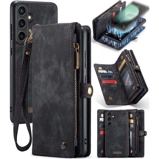 Caseme 008 Samsung Galaxy S23 FE Hülle Abnehmbare 2in1 Klapphülle Geldbörse - Schwarz