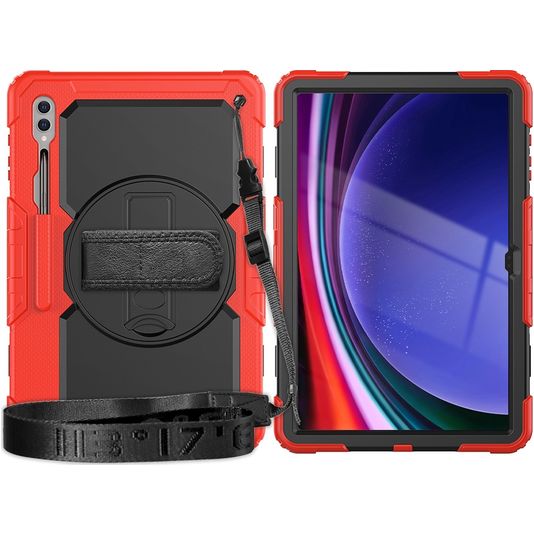 Mobigear SureGrip Xtreme Samsung Galaxy Tab S9 Ultra Hülle Kunststoff,Silikon Backcover + Schulterträger + Ständer - Schwarz / Rot