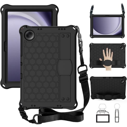 Mobigear HexStrap Samsung Galaxy Tab A9 Plus (2023) Hülle EVA Schaum Backcover + Schulterträger - Schwarz