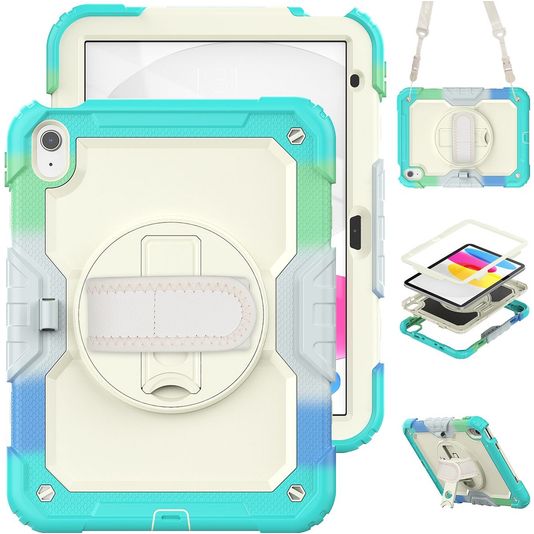 Mobigear SureGrip Xtreme iPad 10 (2022) Hülle Kunststoff,Silikon Backcover + Schulterträger + Ständer - Weiß / Türkis