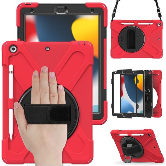 Mobigear SureGrip XGuard iPad 7 (2019) Hülle Kunststoff,Silikon Backcover + Stifthalter + Schulterträger + Ständer - Rot