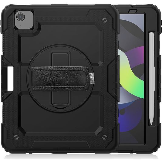 Mobigear SureGrip Xtreme iPad Air 4 (2020) Hülle Kunststoff,Silikon Backcover + Stifthalter + Schulterträger + Ständer - Schwarz