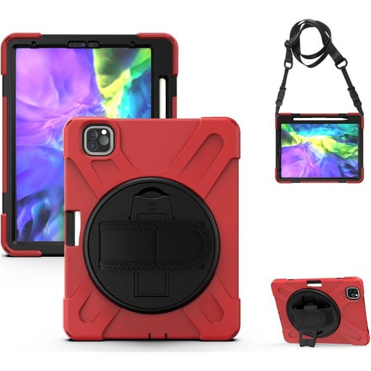 Mobigear SureGrip XGuard iPad Air 4 (2020) Hülle Kunststoff,Silikon Backcover + Stifthalter + Schulterträger + Ständer - Rot