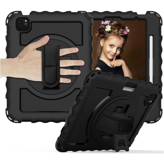 Mobigear SureGrip Xtreme iPad Air 4 (2020) Hülle Kunststoff,Silikon Backcover + Stifthalter + Schulterträger + Ständer - Schwarz