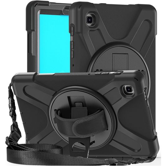 Mobigear SureGrip XGuard Samsung Galaxy Tab A7 Lite Hülle Kunststoff,Silikon Backcover + Schulterträger + Ständer - Schwarz