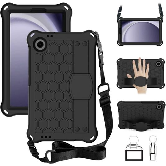 Mobigear HexStrap Samsung Galaxy Tab A9 (2023) Hülle EVA Schaum Backcover + Schulterträger - Schwarz