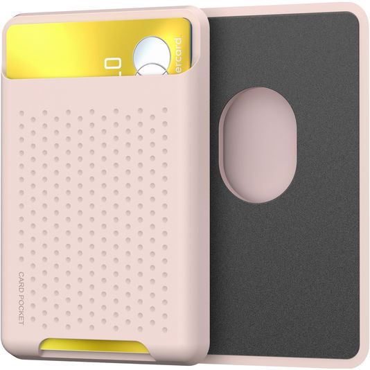 Der Mobigear Pocket MagSafe-kompatible Kartenhalter ist in der Farbe pink erhältlich und besteht aus luxuriösem flexiblem Silikon Kunststoff.
