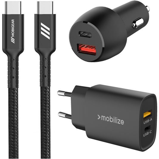 Mobigear Essentials Ladegerät + Auto Ladegerät + USB-C Kabel 1 Meter Power Delivery 48W - Schwarz