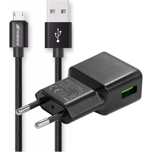 Mobigear Essentials Single USB Ladegerät Micro USB 1 Meter 12W 2.4A - Schwarz