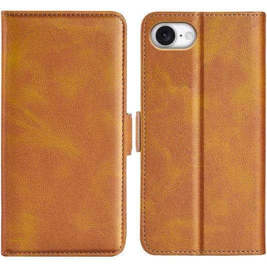 Mobigear Slim Magnet iPhone 16e Hülle Klapphülle Geldbörse - Cognac
