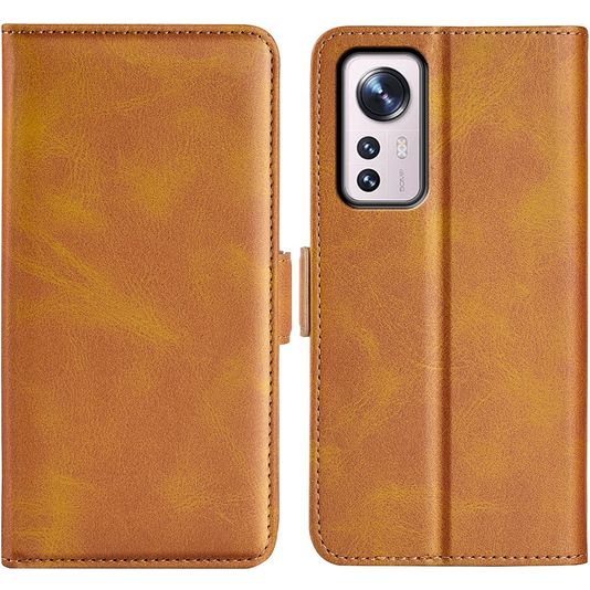 Mobigear Slim Magnet Xiaomi 12 Pro Hülle Klapphülle Geldbörse - Cognac