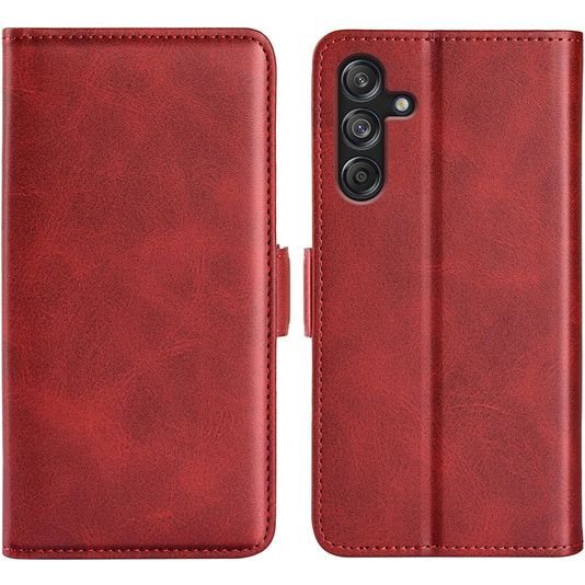 Willst du eine Samsung Galaxy M55 Hülle mit Rundum-Schutz und einem stylischen und praktischen Design? Dann ist diese Mobigear Slim Magnet Klapphülle für Samsung Galaxy M55 die perfekte Wahl. Die Klapphülle ist aus hochwertigem Kunstleder gefertigt und kommt in der Farbe rot. Mit einer Klapphülle ist dein Samsung Galaxy M55 rundum gut geschützt, auch der empfindliche Bildschirm. Die Klappe öffnet sich seitlich wie ein Buch und schließt sich fest mit einem Magnetverschluss. Es gibt Platz für 3 Karten, damit du deine Bankkarte oder deinen Ausweis immer zur Hand hast.