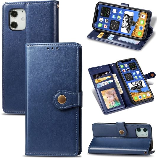Mobigear Snap Button iPhone 12 Pro Hülle Klapphülle Geldbörse - Blau