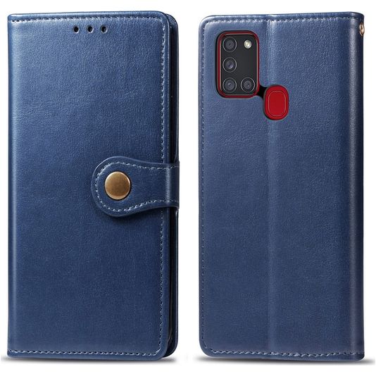 Mobigear Snap Button Samsung Galaxy A21s Hülle Klapphülle Geldbörse - Blau