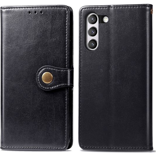 Mobigear Snap Button Samsung Galaxy S21 FE Hülle Klapphülle Geldbörse - Schwarz
