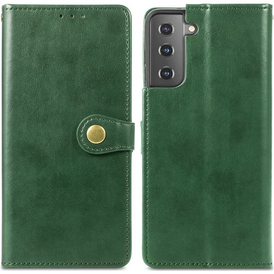 Mobigear Snap Button Samsung Galaxy S21 Plus Hülle Klapphülle Geldbörse - Grün