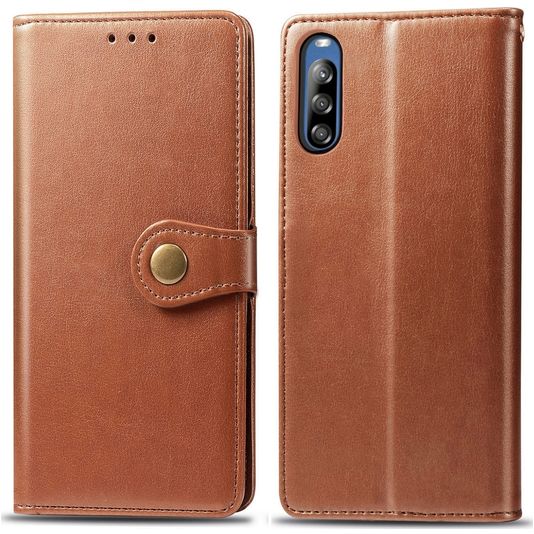 Mobigear Snap Button Sony Xperia L4 Hülle Klapphülle Geldbörse - Cognac