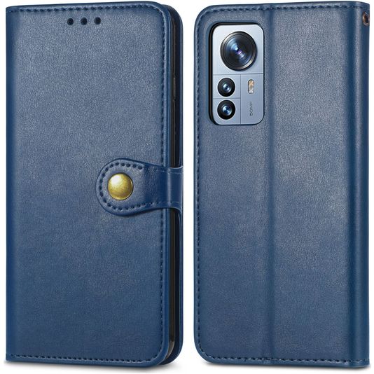 Mobigear Snap Button Xiaomi 12 Pro Hülle Klapphülle Geldbörse - Blau