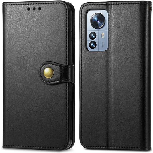 Mobigear Snap Button Xiaomi 12 Pro Hülle Klapphülle Geldbörse - Schwarz