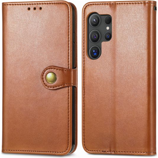 Mobigear Snap Button Samsung Galaxy S25 Hülle Klapphülle Geldbörse - Braun