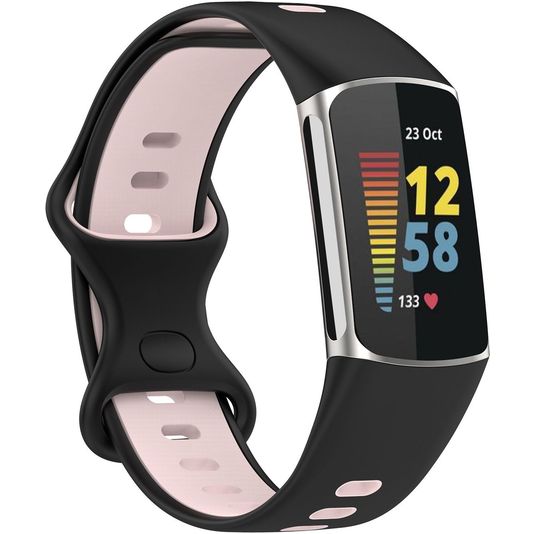 Mobigear Sport Dual Silikon Fitbit Charge 5 Armband Drückerschließe - Schwarz / Pink