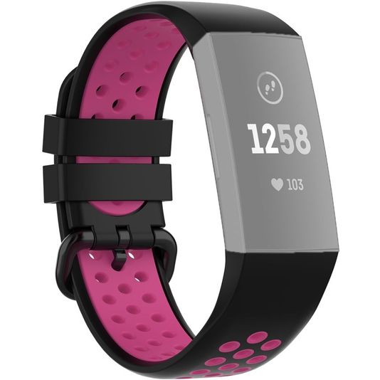 Mobigear Sport Plus Buckle Silikon Fitbit Charge 4 Armband Dornschließe - Schwarz / Rot