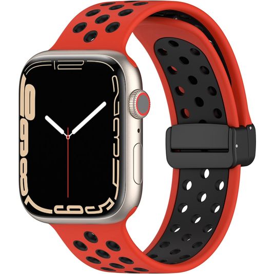 Mobigear Sport Plus Mag Silikon Apple Watch Armband Magnetverschluss - 42/41/40/38 mm - Schwarz / Rot