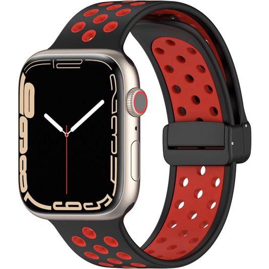 Mobigear Sport Plus Mag Silikon Apple Watch Armband Magnetverschluss - 42/41/40/38 mm - Schwarz / Weinrot