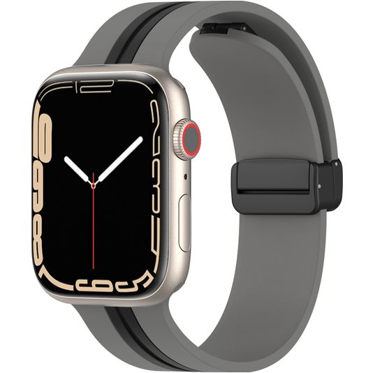 Mobigear Stripe Mag Silikon Apple Watch Armband Magnetverschluss - 42/41/40/38 mm - Schwarz / Grau