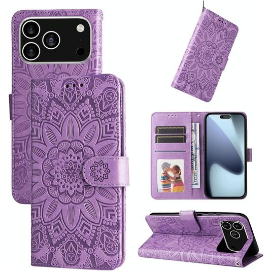 Mobigear Sunflower iPhone 17 Pro Hülle Klapphülle Geldbörse - Lila