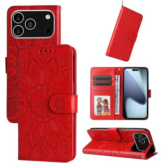Mobigear Sunflower iPhone 17 Pro Hülle Klapphülle Geldbörse - Rot