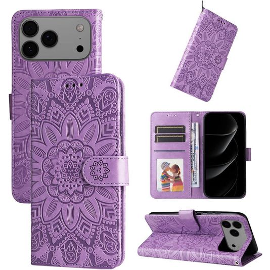 Mobigear Sunflower iPhone 17 Pro Max Hülle Klapphülle Geldbörse - Lila