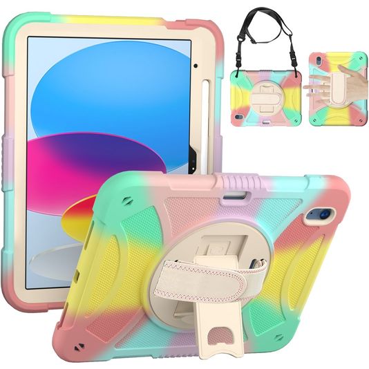 Mobigear SureGrip iPad 11 (2025) Hülle Kunststoff,Silikon Backcover + Stifthalter + Schulterträger + Ständer - Rainbow