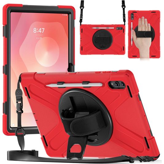 Mobigear SureGrip XGuard Samsung Galaxy Tab S11 Ultra Hülle Kunststoff,Silikon + Stifthalter + Schulterträger - Rot