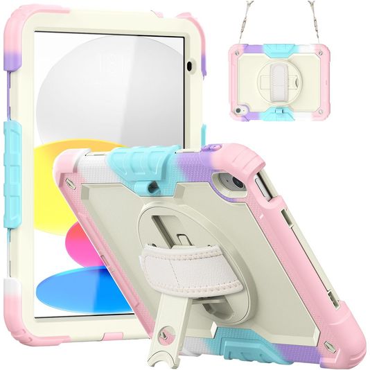 Mobigear SureGrip Xtreme iPad 11 (2025) Hülle Kunststoff,Silikon Backcover + Schulterträger + Ständer - Rainbow