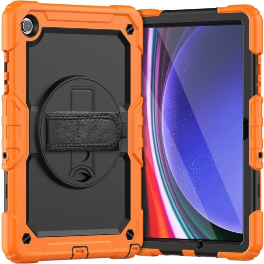 Mobigear SureGrip Xtreme Samsung Galaxy Tab A9 Plus (2023) Hülle Kunststoff,Silikon Backcover + Schulterträger + Ständer - Orange